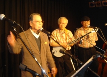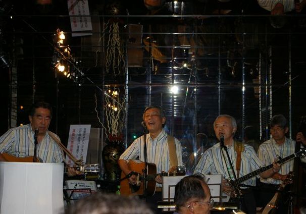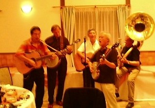 ミュージシャンも頑張って、中に入っていきました。特筆すべきは、花岡御大ご推薦で東京から参加の2人の女性(banjo-の名手・青木研