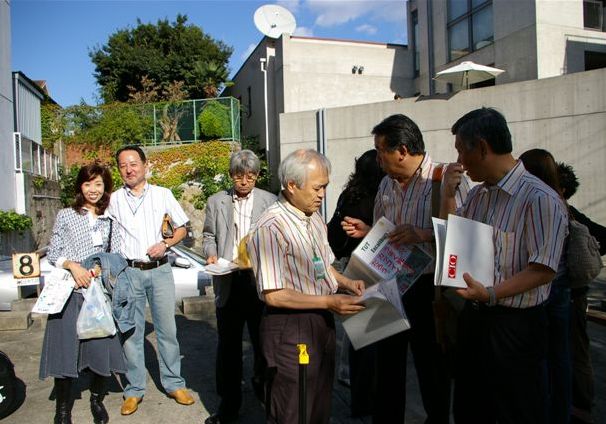 の入り口の裏で、「すし万」さん特製の昼飯鯖寿司をパクパクと腹ごしらえ。我々が、同教会でのPerformanceの今年の先頭バッター。