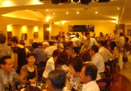 ご機嫌なクラブに、早目に全員集合。広い店内の正面に、ピアノがでんと座っており、ガラス張りの天井と壁、ダークな赤紫の低いソファー