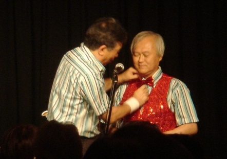 2部では、上野が昨年11月に還暦を迎えましたので、前回の竹元同様、スパンコール付きの赤いベストと蝶ネクタイが贈られ(実際は