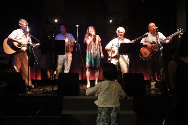 PA設備(マイク・アンプ等)がフォークバンド向きでは無く、急遽、自前の器材を持ち込み対応し、精一杯、唄い切ったものの、お客様には少し不満だったのではと、申し訳なかったのが4人の気持ち。ただ、ちょっと少なめのお客様達と不思議なCommunicationが保てた気も。