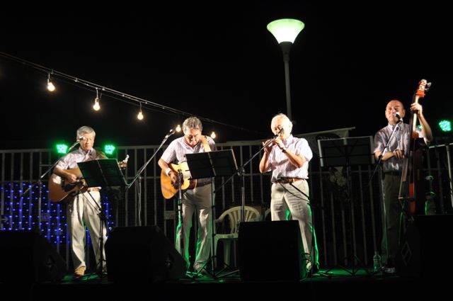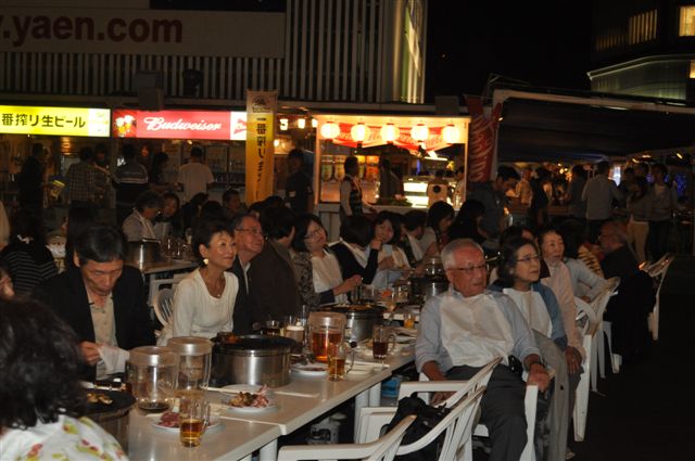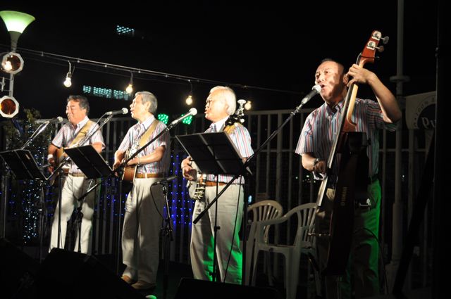 祭典スタート、第一発目の演奏。Location的には中心地より少し離れているにも拘わらず、沢山のお客様にお越しいただき、4人、最初の感激。ムード満点の会場ですので、お酒を手にお聴きの方もチラホラで、気持ちの良いスタート。