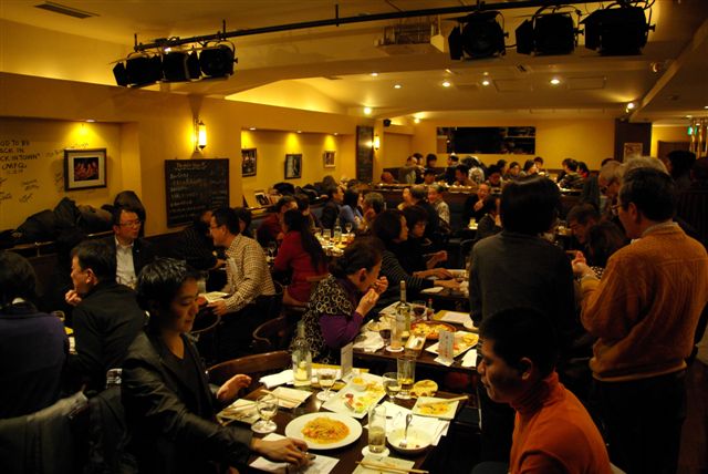 いつもながら、最初から、飲みと食いが交差する健啖家の大パーティーの様相で、お店の人達もてんてこ舞いながら、正に嬉しい悲鳴、とのことでした。一方、我々4人には珍しく、過度の緊張もなく、前半から客席と一体となった楽しいライブが展開できたと喜んでいます。