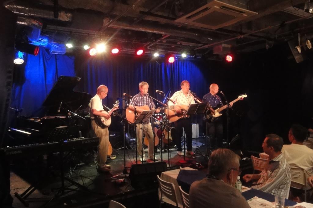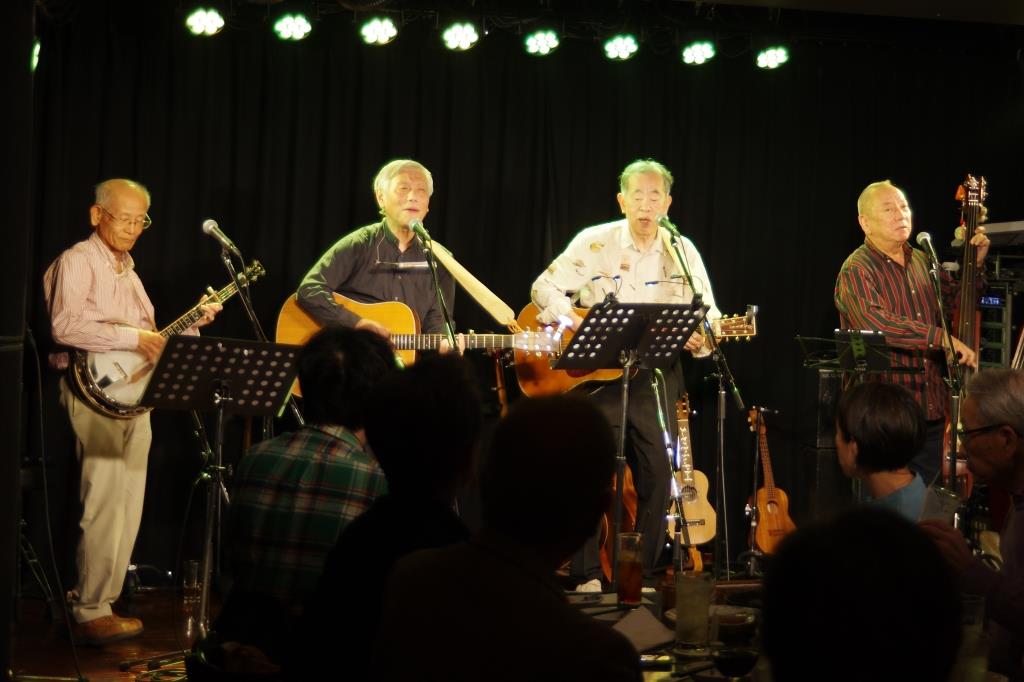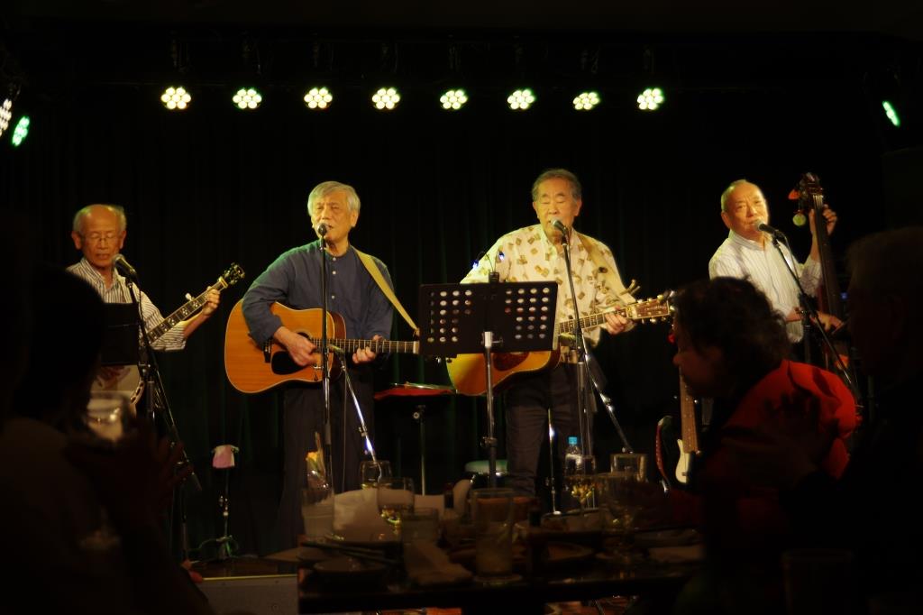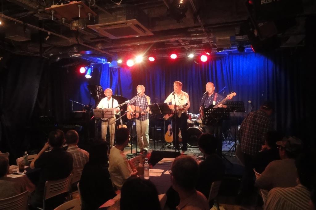 Excalibursは、先頭バッターで、硬軟&緩急取り混ぜた多種の8曲を演奏。半年ぶりに超満員のお客様を前に、大声を響かせライブならではの楽しい時間を過ごしました。